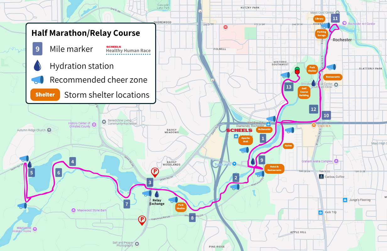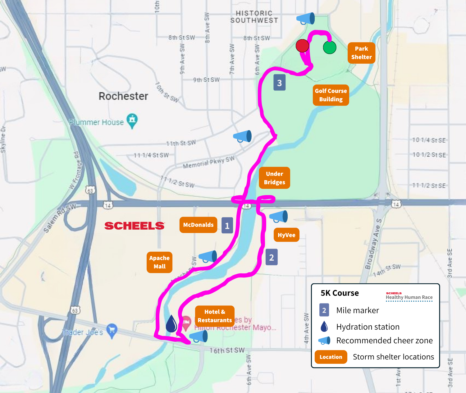 Both courses start and end at Soldiers Memorial Field Park, Rochester Minnesota.